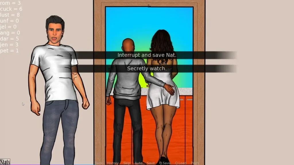 This constant push-and-pull between comfort and curiosity, between loyalty and lust, is what makes A Couple’s Duet of Love & Lust utterly addictive. You’re not just reading a story about a couple; you’re conducting the delicate, often chaotic, symphony of their marriage. Every saved game is a new possibility, a chance to explore a completely different emotional landscape within the same foundational Ethan and Natalie story.